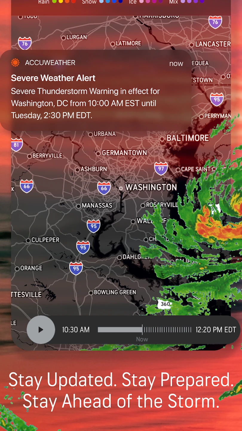 A: You can activate location-based alerts within your app settings. When severe weather is predicted for your area, AccuWeather: Weather Radar will deliver push notifications directly to your device.