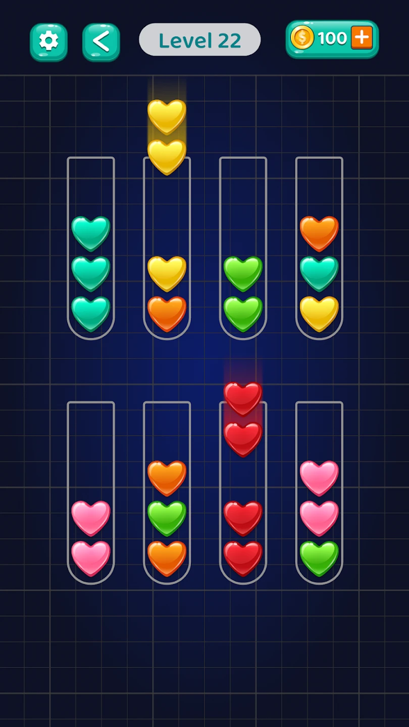 - Step 1: Launch the game and start from Level 1, familiarizing yourself with the basic tap-and-drop mechanics by sorting three colors into their correct tubes.