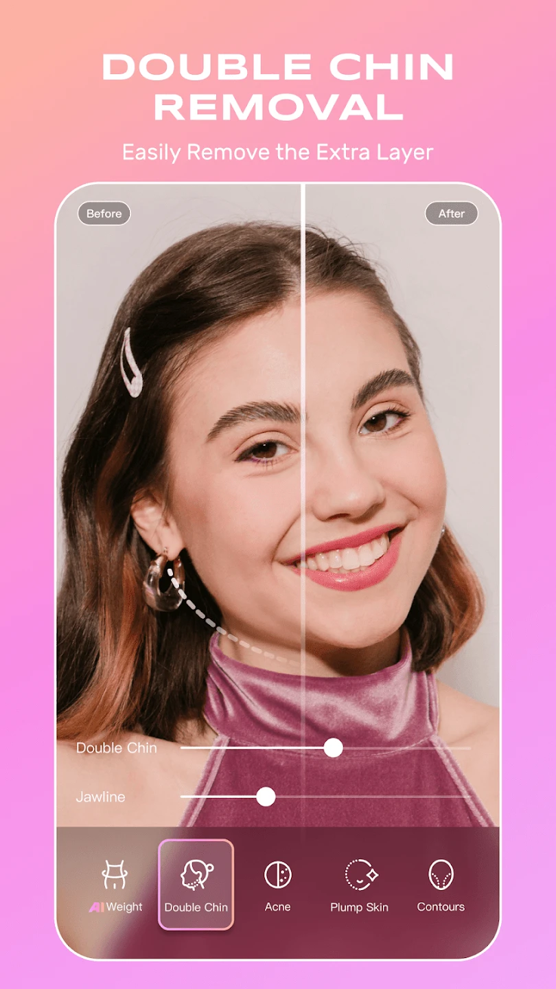 • Creative Face Shaping & Refinement: Utilize AI-driven tools to subtly reshape facial features according to current aesthetic trends or personal preference, such as refining jawlines or subtly adjusting cheek contours. The system intelligently understands facial structures to provide suggestions that look harmonious and natural, enhancing portraits with a single tap for faster, more confident editing.