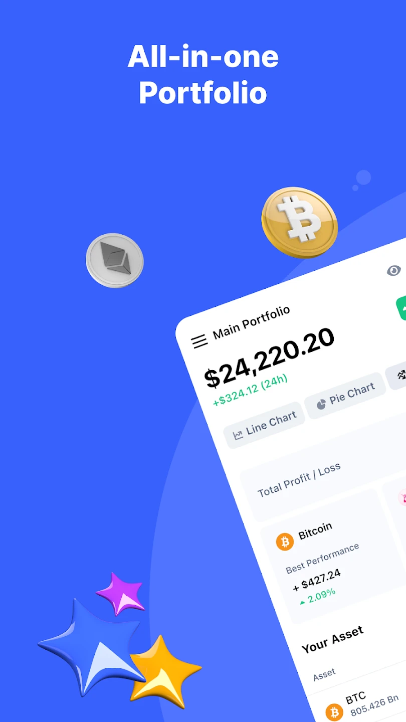 - Portfolio Tracker: Seamlessly monitor your cryptocurrency holdings’ value, allocation, and performance against market benchmarks. This feature simplifies managing diverse digital asset investments with customizable notifications.