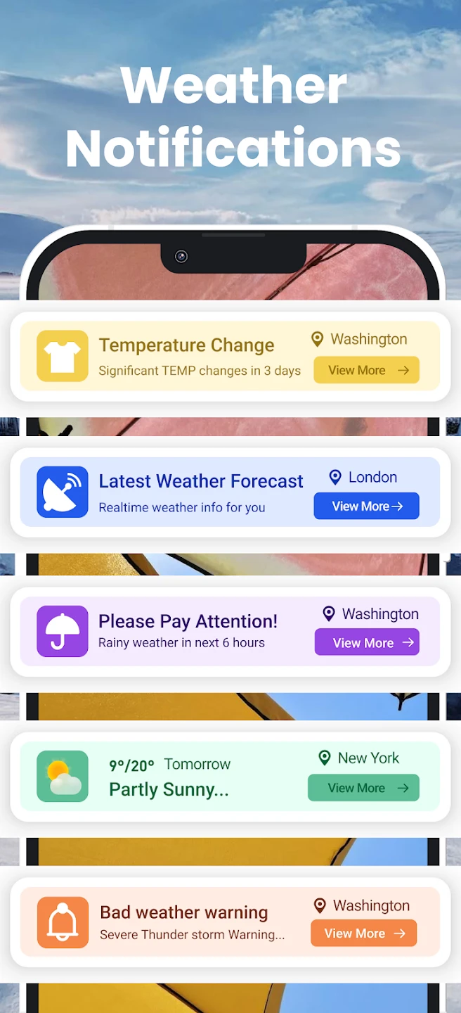 • Home Screen Widget Integration: Instantly view current conditions, temperature, and a brief forecast right from your phone’s home screen without opening the app. This feature saves valuable time for busy individuals who need quick weather updates, like checking if they need an umbrella before stepping out of their office door.