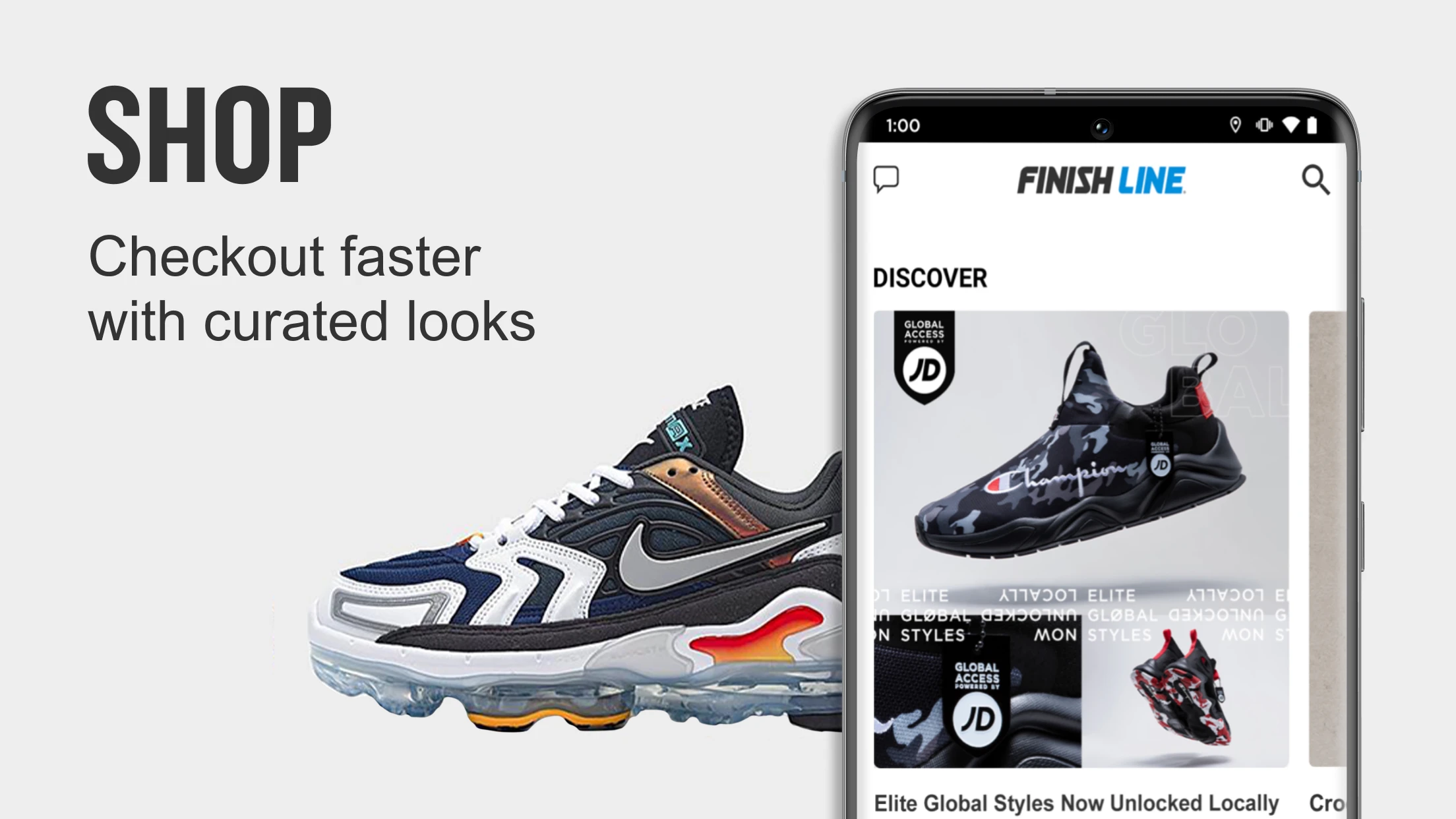 A: The Finish Line: Shop new sneakers app is officially partnered with major footwear retail entities and certified as secure by multiple independent auditors. We’re a vetted platform, not a marketplace, meaning no user funds or personal data is ever stored beyond the account creation.