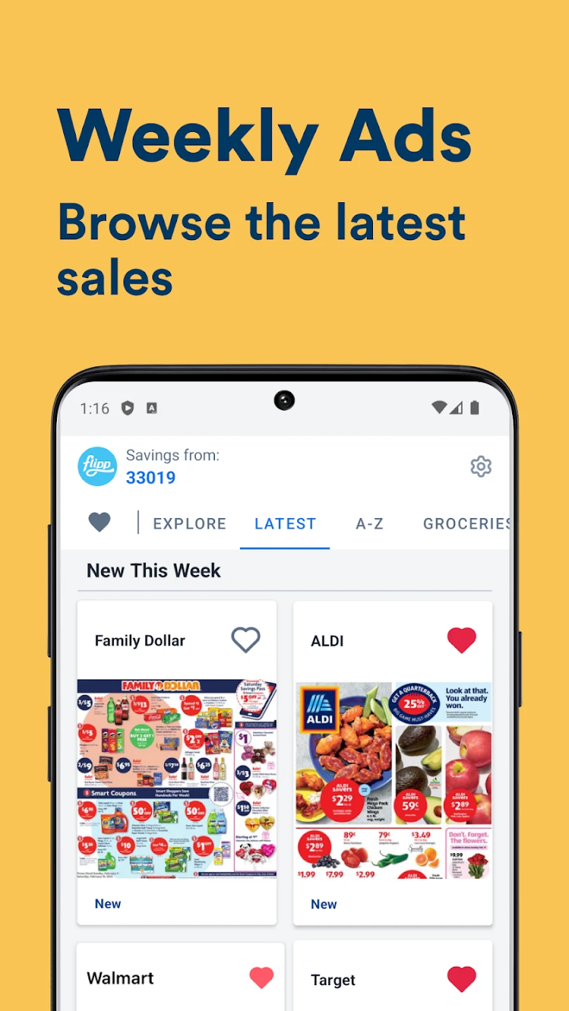 - Deal & Coupon Notifications: Flipp provides personalized notifications about current promotions and digital coupons available at specific stores, ensuring you know the best offers before you shop. This feature saves time and money by delivering relevant discounts straight to your device, reducing the need for manual coupon hunting and helping you adhere to your grocery budget.