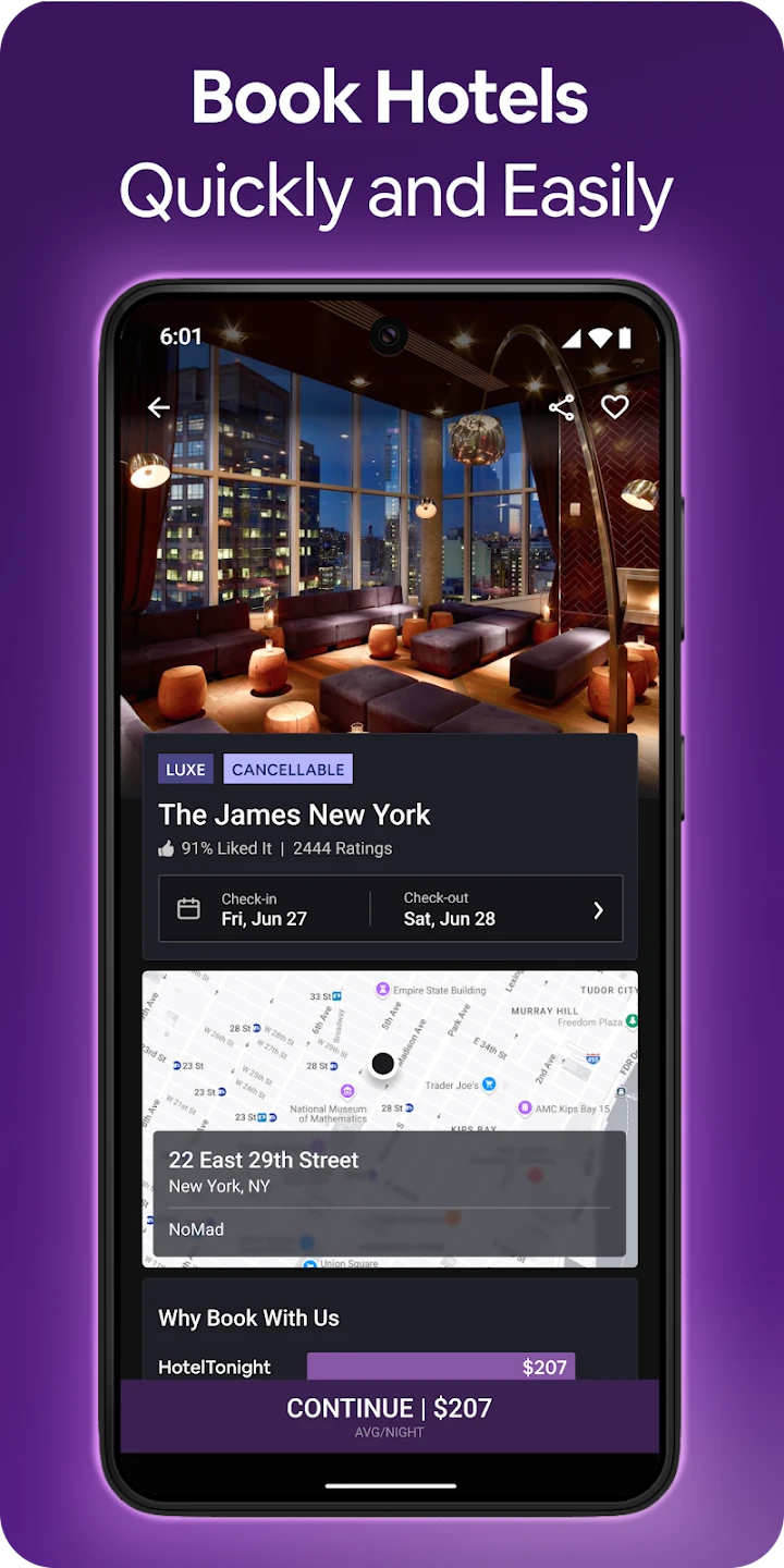 Its key value lies in transforming what would typically be a frustrating last-minute booking experience into a streamlined process that delivers savings and convenience. The appeal is particularly strong for travelers who value flexibility, need to save money on unexpected trips, or simply want to avoid the standard, often inflated rates charged by traditional hotel booking platforms. HotelTonight: Hotel Deals essentially gives users access to a dynamic marketplace of last-minute vacancies.