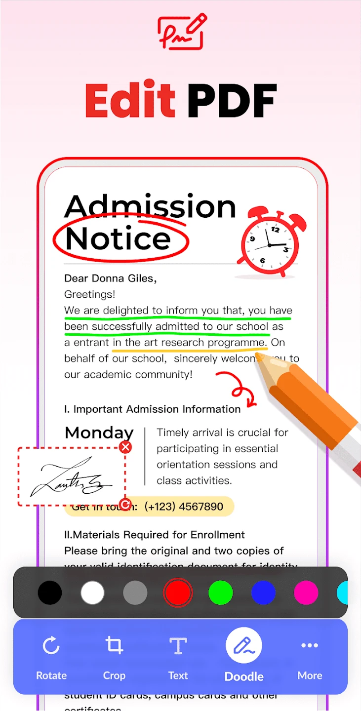 - Image Editing Tools: Crop, rotate, and enhance images before PDF conversion to ensure perfect alignment, remove unwanted edges, or improve readability, including features to adjust brightness and color balance. These editing capabilities allow for clean, professional-looking documents directly within the app without needing external software.