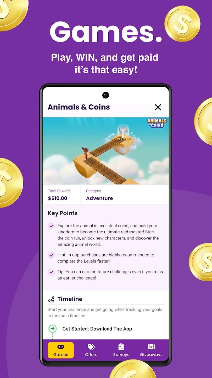 • Bonus Challenges & Streaks: Participate in fun, short challenges or themed activities within the app to unlock bonus rewards. This adds an element of excitement, encouraging longer engagement and loyalty by making regular tasks feel like part of a dynamic game or community event, boosting user retention.