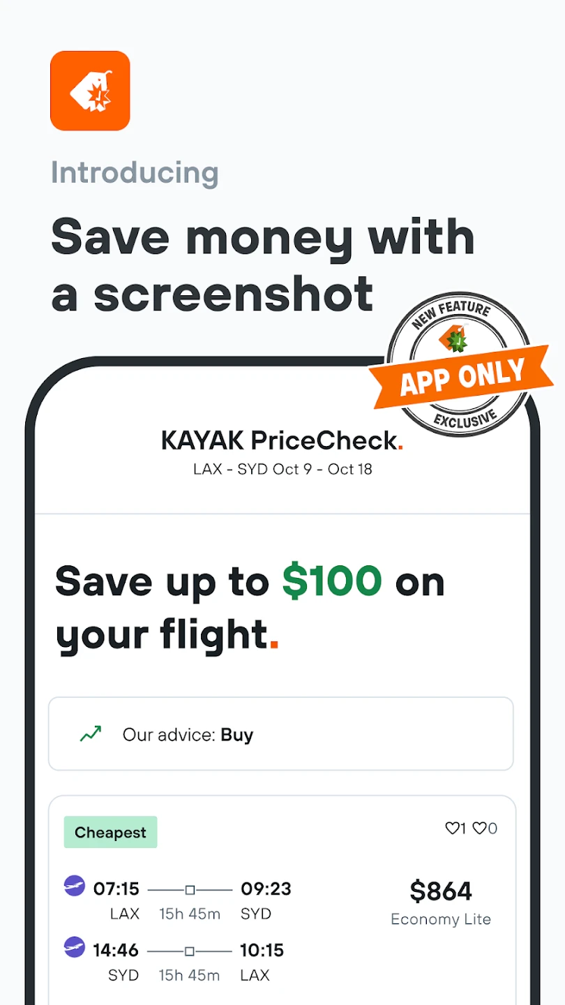 • Mobile App Functionality & Offline Access: Plan and manage your entire trip on the go using the KAYAK mobile app; compare prices, save itineraries, and book directly. For situations with limited internet connectivity, the ability to view previously saved results and book confirmations offline is invaluable, ensuring you can access critical trip information anytime, even without live internet access.
