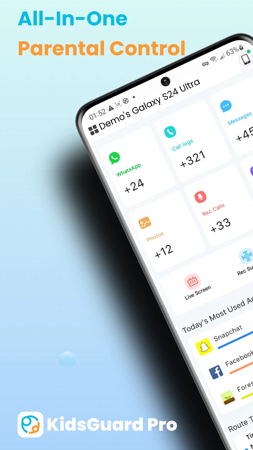 • Activity Monitoring: KidsGuard Pro-Phone Monitoring allows detailed tracking of the child’s installed applications, including the frequency of use and background running. The system scans installed apps and logs usage statistics, providing parents with insights into their child’s online habits and potential distractions. This data helps understand digital consumption patterns, identify potential time-wasters, and guide conversations about balancing screen time with other activities.
