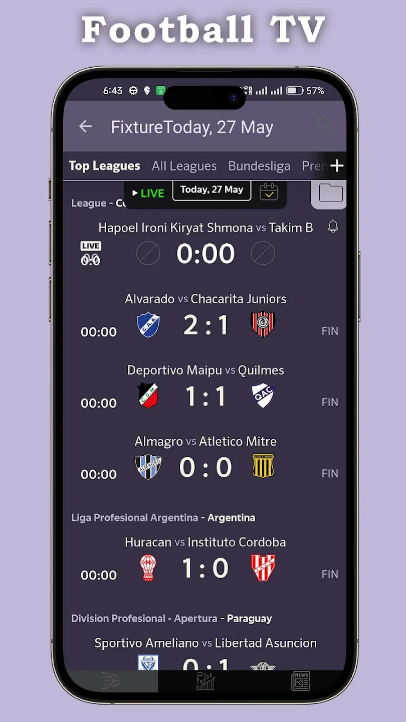 • Global Match Library: Access hundreds of daily football games from over 30 leagues worldwide using smart filters that automatically group regional tournaments.