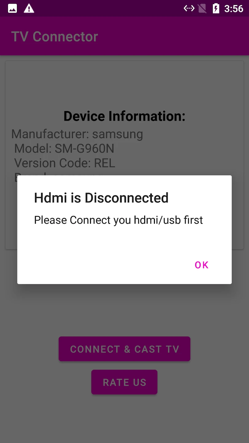 Q: My TV doesn’t seem to be detecting the connection. What should I check first with the Mobile Connect to TV USB HDMI app?