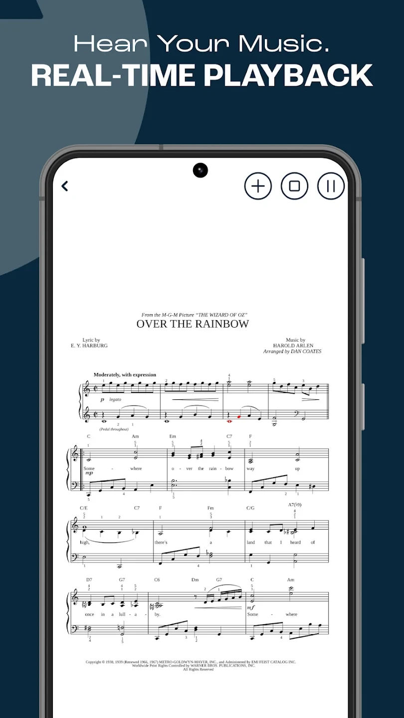 - Simple Playback Interface: Easy-to-use controls allow focused listening and practice without complicating the sheet music viewing experience.
