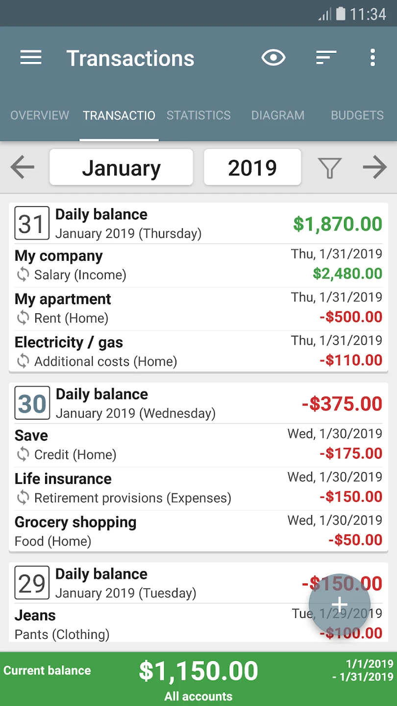 A: Absolutely – create one-time or repeating entries (weekly bills, monthly subscriptions) to save time.