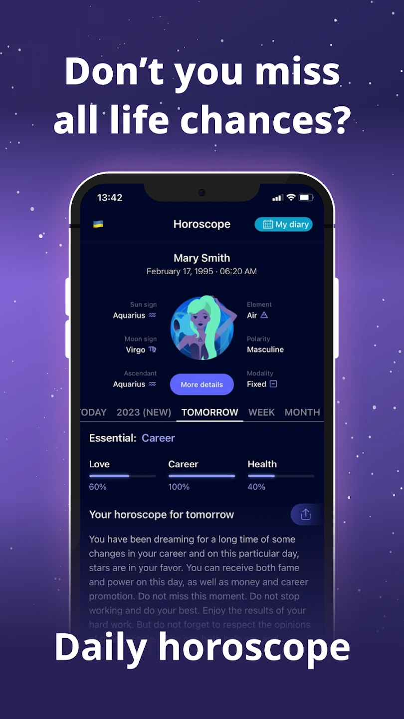 • Personalized Daily Horoscopes: Receive accurate and engaging interpretations of the day’s astrological influences specifically for your sun sign and rising sign. This feature saves you time by delivering insightful, tailored advice directly to your device, making navigating the day feel more connected and guided.
