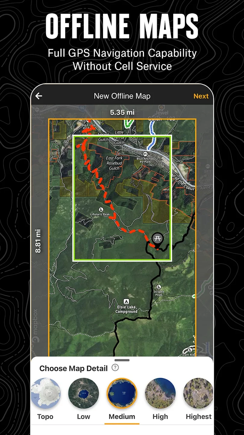 • Compatibility with Topo Maps: Seamlessly works with popular USGS US Topo, USGS National Elevation Dataset, and MapTech GTOPO maps among others. This flexibility allows users to access familiar map styles and data sources within the onX Offroad environment, catering to different regional availability and preferences.