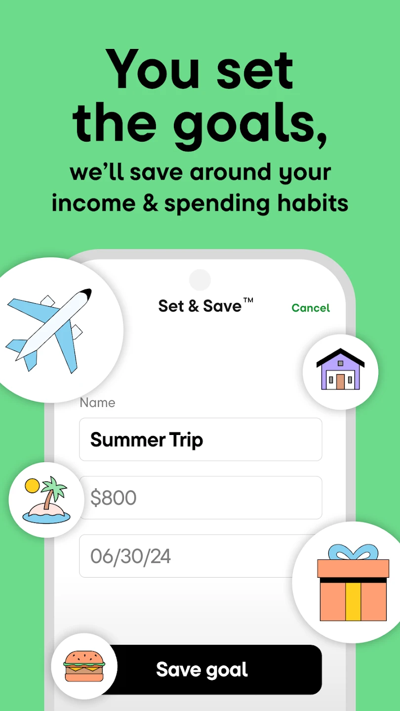 • Smart Savings Goals: Define specific savings targets (e.g., vacation fund or emergency savings) within a timeframe; the app tracks progress and suggests small, achievable steps to reach your goals faster. Its intelligent algorithms analyze your income and spending, offering personalized recommendations to accelerate savings growth.
