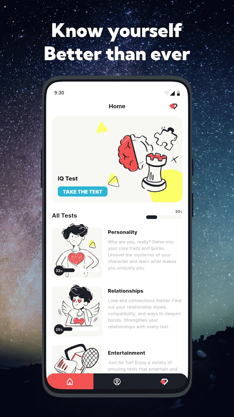 • User-Friendly Interface & Guidance: The app features intuitive navigation and helpful prompts during test-taking, making complex assessments approachable even for first-time users, thus lowering the barrier to entry for psychological exploration.