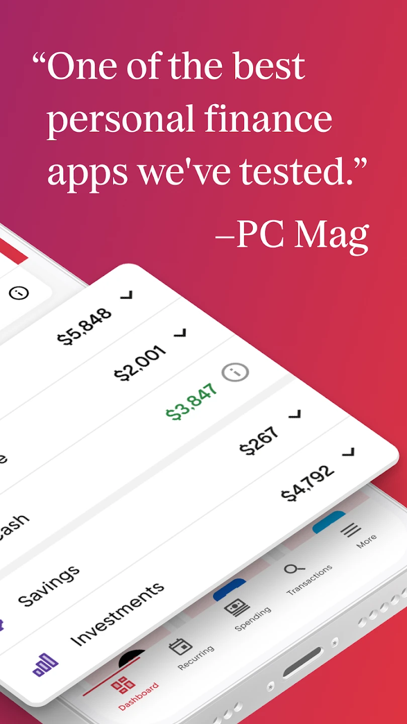 Connects to multiple accounts, provides financial goal tracking, includes bill payment features.