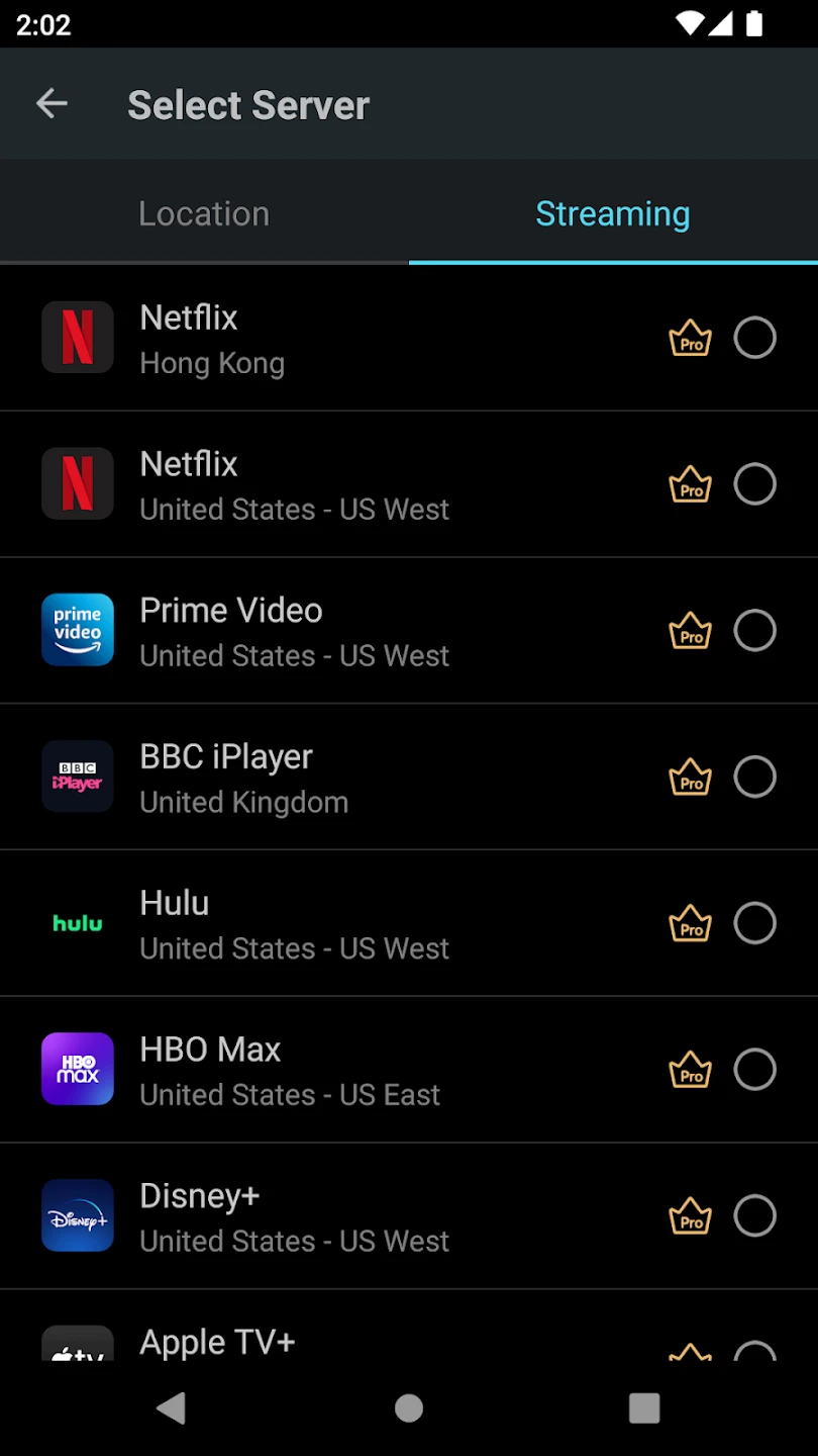 • Wide Range of Server Locations