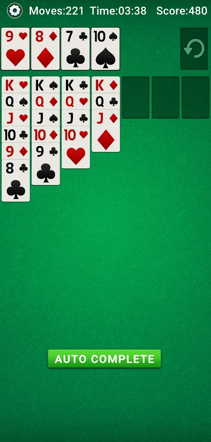 - Step 2: Tap the tableau columns to view, select cards to move, and strategically place them on foundations by matching suit sequences. Begin with your menu’s “Beginner” option.