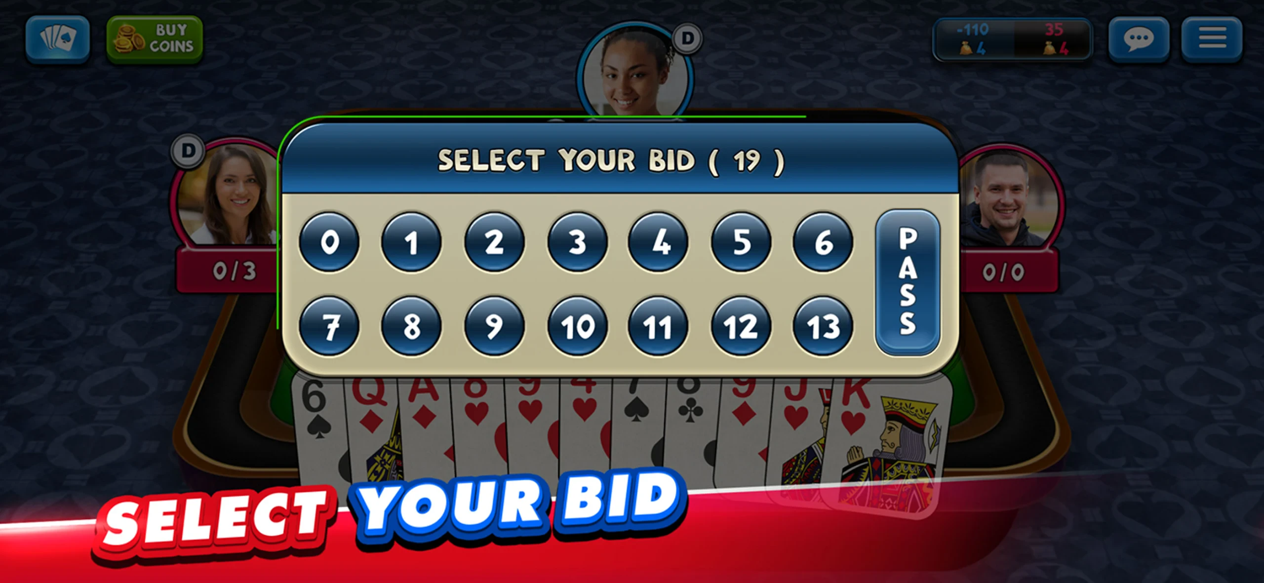 - Step 2: Select your preferred mode: practice with Single-Player against AI or challenge friends/random players in multiplayer. Begin by familiarizing yourself with bidding mechanics and card selection.