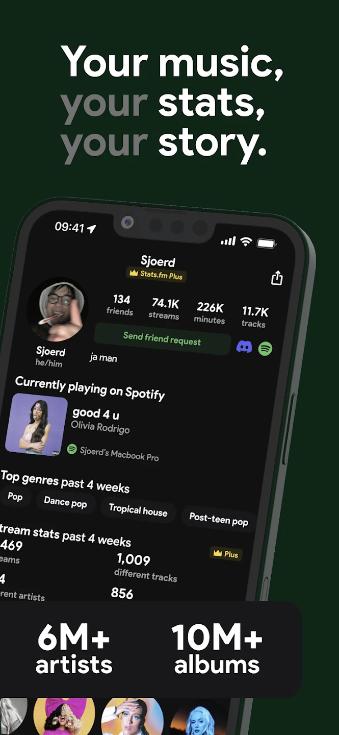 • Detailed Listening Reports: stats.fm for Spotify compiles listening data into comprehensive reports covering genres, artists, top tracks, and listening habits, available via a dedicated website. These reports provide a holistic view of your music consumption patterns, helping you understand your tastes better over time.