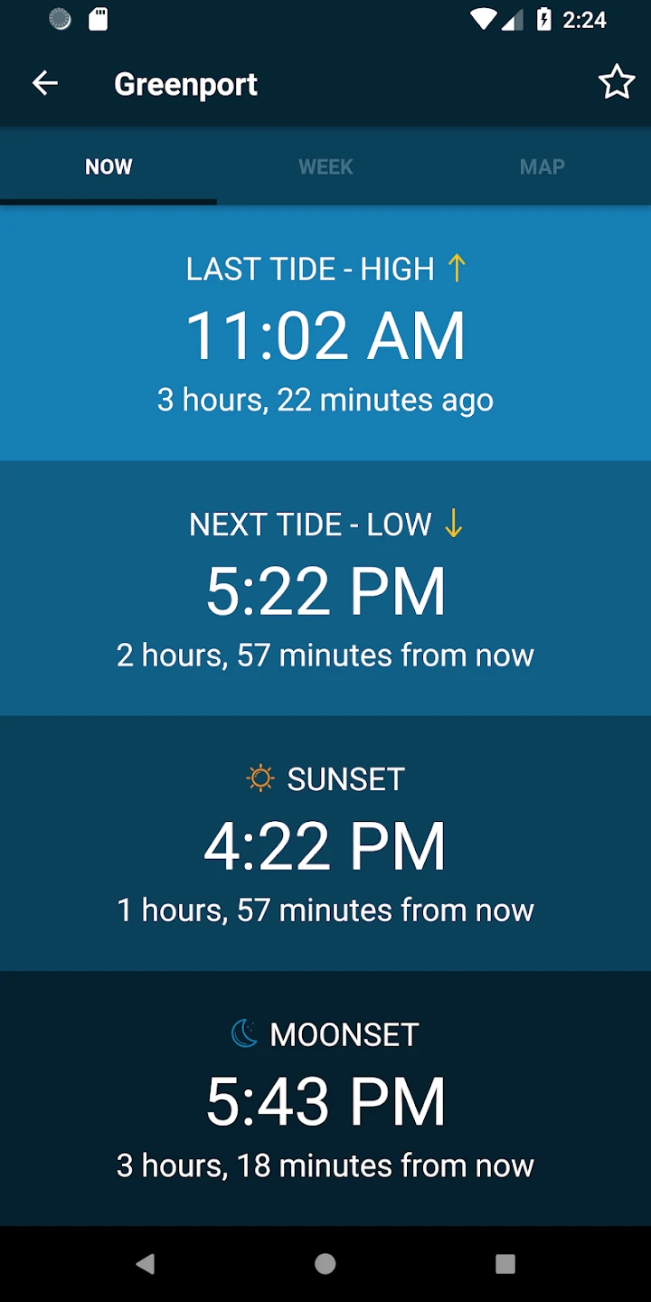 • Tide Predictions: Get precise predictions for the current tide state, including high tide and low tide times, as well as the predicted tide height. This helps users know exactly when the water level is rising or falling, which is vital for activities like navigating shallow areas, planning boat launches, or understanding coastal flooding risks.