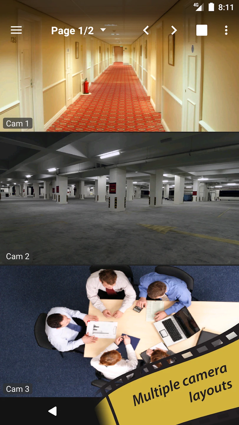 - Multiple Camera Support: View feeds from up to 8 cameras simultaneously, perfect for monitoring different areas of your home or business premises. This feature allows users to keep tabs on multiple entry points, rooms, or work zones without needing separate applications, enhancing overall security coverage.