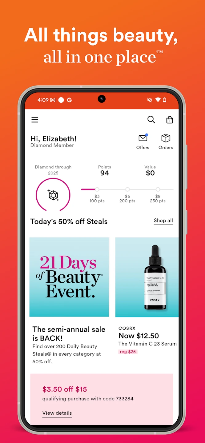 Features beauty expert advice, new product alerts, and personalized recommendations from the major competitor in beauty retail. |