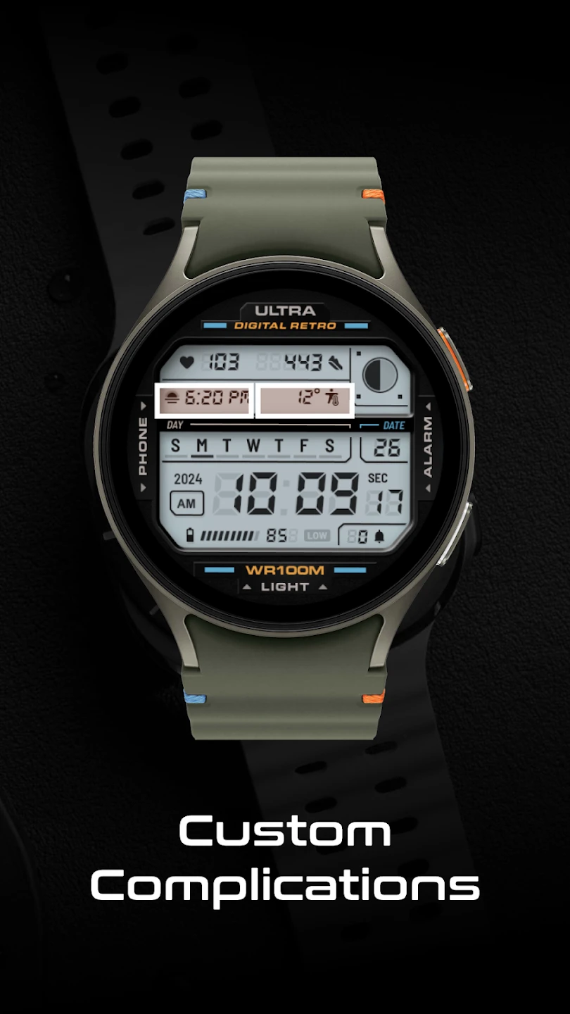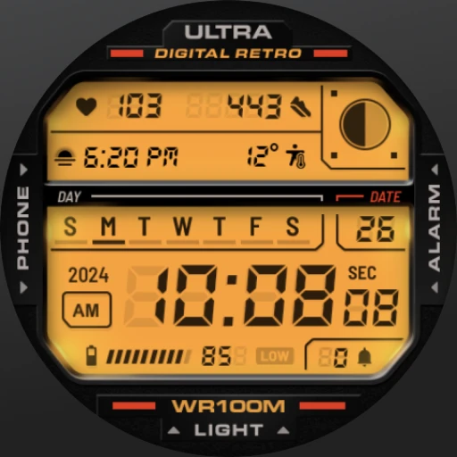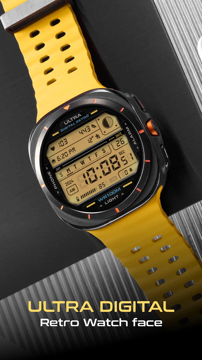 • Compatibility & Style Flexibility: This ULTRA Digital Retro watch face is designed to work with various popular smartwatch platforms, offering its distinctive style to a wide range of users. The flexibility allows individuals with different watch brands to experience the nostalgia and smart features, making it a versatile choice for diverse preferences.