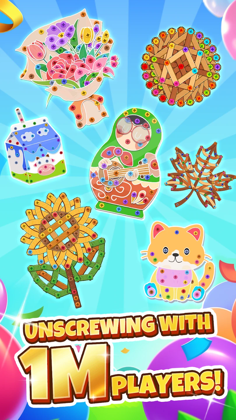• [Modes or Levels]: Typically featuring a large single-player campaign level with increasing difficulty, “Unscrew Nuts Sort: Pin Puzzle” offers substantial replayability. Unique content often includes special stages with bonus points, timed challenges, or unlockable characters or visual themes to collect and customize.