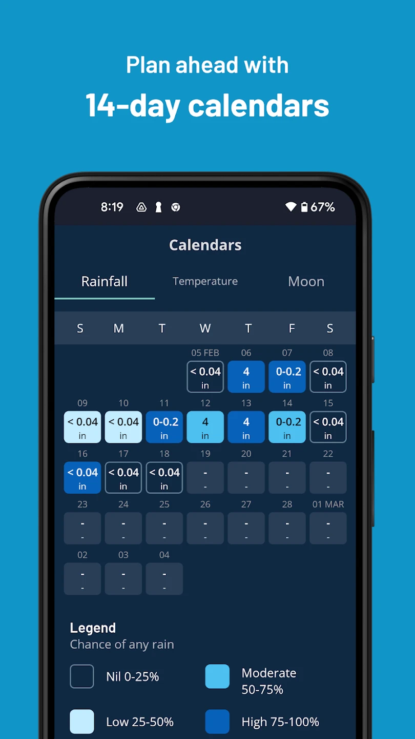 - Extensive Observation Data: Utilize real-time data feeds including temperature, humidity, wind speed & direction, atmospheric pressure, and rainfall rates. This feature allows for detailed tracking of local conditions, proving invaluable for understanding microclimates or verifying forecast accuracy for specific events.