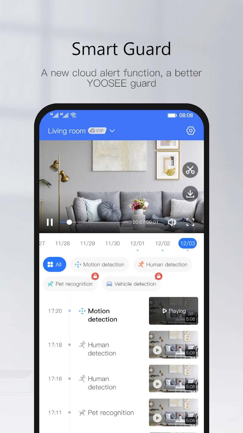 • Motion Detection Alerts: Receive notifications instantly when motion is detected within the camera’s field-of-view. By enabling intelligent detection modes and configuring alert schedules, Yoosee ensures timely warnings only for relevant activities, reducing false alarms and focusing your attention on genuine security concerns for a more efficient monitoring experience.